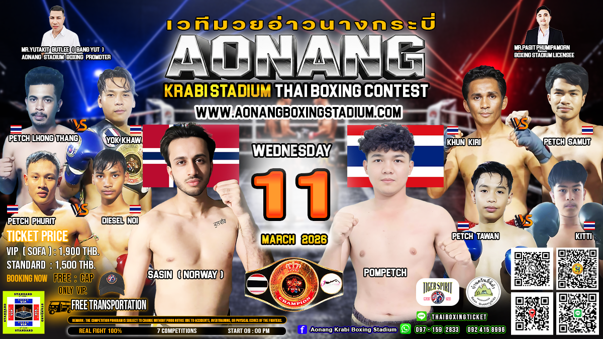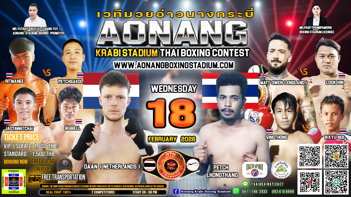 Free : Cap (Only VIP) Remark: The competition program is subject to change without prior notice due to accidents, overtraining, or physical issues of the fighters.